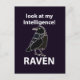 Raven Look At My Intelligence Raven Postcard original design by Nisha Prabhu. Embrace the Enigma with Our 'Raven, Look at My Intelligence' Postcard! Perfect for the raconteurs, dreamers, and wise souls among us, this postcard features a striking design that celebrates the cleverness and mystery of ravens. Ideal for sending a witty note to a friend or displaying as a unique piece of art, this postcard captures the essence of intelligence wrapped in the allure of nature. A stunning illustration of a raven alongside playful typography, striking a perfect balance between elegance and intrigue. Perfect for mailing, scrapbooking, or as a decorative addition to your wall art collection! Whether you're a bird enthusiast or just appreciate the beauty of cleverness, this postcard is sure to inspire thought and conversation. Send a piece of your wisdom today!