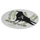 A unique monogram raven cutting board! Your Raven Spirit Animal will be with you in the kitchen! A black raven silhouette sits over branches of green eucalyptus with a grey monogram letter in the center of his body. The name personalization sits right under the art. A thoughtful wedding gift for couples who love Ravens and Crows!