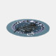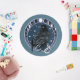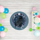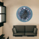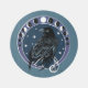 Tribal raven sitting in a circle of stars and phases of the moon all drawn in a na set nouveau style in a backdrop of blues and purple