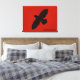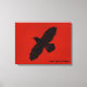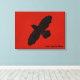 A simple, black silhouette of a Raven (Corvus corax) on a red, leather-look background image. The raven image has been given a slight "rough" or "worn" effect. Add your own text.