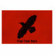 A simple, black silhouette of a Raven (Corvus corax) on a red background. The raven image has been given a slight "rough" or "worn" effect. Add your own text.