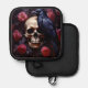 A human skull is surrounded by red roses, and visited by a raven on this fabulous Goth pot holder. Dark, haunting, and oh-so-beautiful!