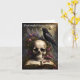 A raven perches on a skull placed on an open book and surrounded by flowers, urging the viewer to "contemplate your mortality" on this Gothic-themed birthday card. Beautiful, with a touch of dark humor.