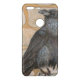 A Raven perched on stone at the Tower of London adorns this phone case! Reference photo by Gustav Sommer on Pixabay.