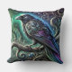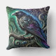 Raven with Iridescent Feathers in Enchanted Forest Throw Pillow