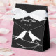 Two elegant ravens perched on a branch are the perfect way to celebrate your gothic wedding. The white bird silhouettes are against a contrasting black background. Also great for a Halloween wedding.
