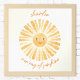 A happy yellow watercolor sunshine with modern script font name and text which reads Our Ray of Sunshine. Change the name and text to customize. Original art by Nic Squirrell. Perfect for a new baby, kid's bedroom or nursery decor.