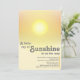 Plain white envelopes are included with paper invitations and will come to fit the invitation size you select. If you don’t need the envelopes, you may choose to not receive them by selecting the dropdown below "Envelopes" and choosing "None." If you’d like to have a design on your envelopes, you can browse all of these available envelopes to find the design that complements your Ray Of Sunshine Sun Baby Shower Invitation.