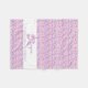 Personalized R monogram name and meaning children's blanket. Pretty hand drawn initial letter R monogram name and meaning girls blanket in purple, pink, pale yellow and white. Ideal for a personalized gift for a girl who has a name that starts with the letter R. This example reads Rayne A harmonious mighty counselor and helpful friend or you can customize the text with your own name and message or words. Makes a unique girls, birthday or celebration gift. If you need help with your own personalized name please contact me. © Typographic letter R flowers and hearts hand drawing and pattern uniquely created by Sarah Trett. www.sarahtrett.com for www.mylittleeden.com