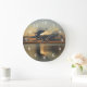 This sunset clock is truly one of the most unique you will find. The clock design features the rays of the sun peeking from behind the clouds at sunset on the water. All the lovely colors are reflected in the water to make a truly stunning sunset wall clock. Copyright Kathy Henis