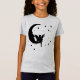 A silhouette of a fairy sitting on the moon, surrounded by stars.