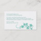 A flowering white branch reaches across this simple and sophisticated serene turquoise business card to accent your customized information. The image is repeated on the back in an opposite treatment. Available in alternate colors with matching favors, stationery and postage.