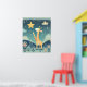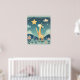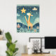 This artwork portrays a charming scene of a giraffe reaching up towards a bright, golden star against a backdrop of a starry night sky. The giraffe's long neck and gentle expression convey a sense of wonder and curiosity. The illustration is rendered in a soft and whimsical style, with delicate textures and a soothing color palette, creating a calming and enchanting atmosphere.