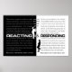 This wellness poster offers a visually compelling, science-based look at how our emotional responses affect the body. One side shows the effects of reactive behavior: adrenaline and cortisol flooding the system, draining energy, and weakening well-being. The other side highlights the benefits of responsive behavior—reduced stress hormones and increased DHEA, a hormone linked to vitality and resilience.