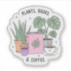 Adorable sticker set of cute potted plants happily reading books. Perfect for book lovers, plant moms, journals, laptops, and cozy aesthetic decor
