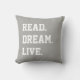 Read Dream Live. Gray White Text. Chevron Back Throw Pillow