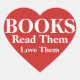 This simple design features the text "BOOKS" "Read Them" and "Love Them" in a bright red heart.
