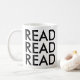 Read Read Read mug is a book lover mug to encourage reading. It is perfect funny mug for a bookworm, a librarian or anyone who loves litterature, like an English teacher. It is the perfect teacher appreciation gift for your English teacher, or just a gift for your child to encourage them to read more. It is written in a modern type and has a touch of humor.