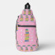 You just found your perfect gift for your book nerd friend ! Indeed this pink sling bag with a colorful bookstack pattern would make any reader happy . It can be personalize with the name of a reading group or you can remove the text altogether .