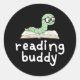Reading Buddy Cute Bookworm with Book Classic Round Sticker