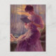 Vintage artwork in purples. A young woman sitting on a window seat. Shear curtains. A moonlit night