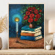 This print of an original handmade painting by Ash Stral, features a captivating arrangement of colorful flowers, antique books, and the soft glow of candlelight. An exquisite artwork that blends rich, deep hues with delicate details, creating a timeless and enchanting atmosphere, perfect for book lovers, art enthusiasts, and vintage decor admirers. You can TRANSFER THIS IMAGE to many products. And use the "EDIT THIS DESIGN" TOOL to customize the image with your own text or personalized details.