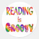 Bring back the retro and have some fun promoting reading with this colorful design saying - Reading is Groovy - with peace signs in the lettering. Great for a teacher or librarian.