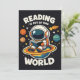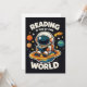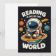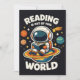 Reading is out of this world shows a cute astronaut sitting on a bright planet while reading a book in space. A playful space themed reading scene for book lovers, students and science fans who enjoy imagination and curiosity.