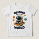 Reading is out of this world shows a cute astronaut sitting on a bright planet while reading a book in space. A playful space themed reading scene for book lovers, students and science fans who enjoy imagination and curiosity.