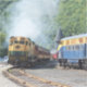 The Alco Century Reading Lines Locomotive shown in excursion service, with A Big cloud of Alco Smoke, in Jim Thorp Pennsylvania, on The Lehigh Gorge Scenic Railway. The former CNJ Railroad Station is in the background next to the Lehigh Gorge State Park. The railway is operated by The Reading Blue Mountain And Northern Railroad. The view along this magnificent route changes with the seasons.