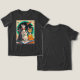 T-Shirt in an illustration of four cats sitting on an open book, gazing at a rocket soaring through a cosmic backdrop. Each cat sports retro-futuristic space gear, blending vintage sci-fi charm with whimsey. The scene evokes wonder, adventure, and imagination fueled by books.
