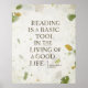 A lesser-known reading quote by Mortimer J. Adler: “Reading is a basic tool in the living of a good life”. Presented on a vintage mulberry paper with leaf texture. Original design by Piotr Kowalczyk © First published: 10.01.2023.