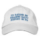 The design was easy to do with a number of options both the hat style, color and so forth. These aren't some printed letters, these are the real deal stitching. The two hats arrived quickly. I've used Zazzle in the past for shirts a number of times and this is the first time for a hat. Zazzle is absolutes the best in every respect; customer service, product selection and results. The embroidery was just right. My artwork was turned into a professional look thanks to Zazzle.