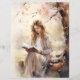 Double-sided scrapbook paper sheet featuring watercolor images of a woman reading under blossoming trees in springtime to help you create your seasonal crafting projects. Perfect for all types of papercraft from scrapbooking to junk journaling.