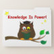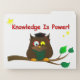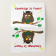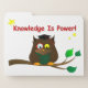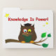 The original wise owl wearing a tassel and reading on a tree with a quote of an English philosopher, Francis Bacon, "Knowledge Is Power!" Great for students and book lovers! Unique gifts for back-to-school, graduations, school events, and other special occasions!