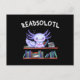 Lovely design featuring a cute axolotl sitting on a bookshelf and the quote "Readsolotl". Good for the young and the old.
