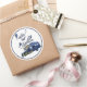 Ready for Adventure is a classic camping sticker. It includes original artwork and hand lettered words from the Art of Camping Now. A classic camping trailer is the main image. The travel trailer reflects the mountainous landscape around the camper.