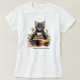 Step into the back-to-school season with the cool confidence of a cat! The 'Inscrutable Like a Cat, Ready For School Like A Boss' t-shirt features a stylish black cat lounging confidently in front of book stacks and a cup of coffee. Combining humor, charm, and determination, this design is perfect for students and cat lovers who tackle challenges with poise and style.