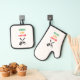 The design printed well on the oven mitt and pot holder, keeping its bold red color. It made a great gift.