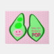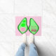 This awesome doormat features a graphic image of a green Pea pod containing 2 green peas and a big pink pea. The large pink pea has a cute little face with eyes and a mouth. On the other side of the pea pod in darker pink text it says "Baby Girl Ready to Pop".