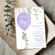 Ready to pop modern purple balloon baby shower invitation