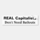 "Real Capitalists Don't Need Bailouts" in newspaper print on a bumper sticker.