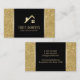 Real Estate Agent Black & Gold Glitter Custom Logo Business Cards.