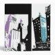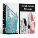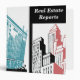 Three simplistic illustrations of various tall buildings in three colors each placed around the binder. White customizable text on the front. Perfect for the real estate agent.