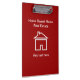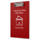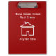 Custom acrylic business clipboard with graphic image of a house symbol on both sides and red background color and text templates you can customize online. Designed for a real estate Broker, Realtor, agent, or agency. A simple modern double side clipboard to promote your business.