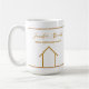 This personalized modern real estate company mug is a chic, contemporary gift for a realtor who likes to help people buy or sell their home. It features your custom name and business above a simple gold line drawing of a house. Order this personalized present for all of your realty agents or clients.