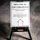 A modern real estate open house welcome foam board in minimalist black and white. Customize this realty agent signage with your custom realtor information and details above the simple line drawing of a home and use this to advertise your open house.