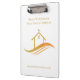 This chic real estate company clipboard is custom made with your realty company and agent name. This modern gold realtor gift features a pretty house with a weathervane on top and sleek curves underneath. Personalize this business marketing item with your own information. Keep the design or replace with your own logo.