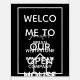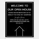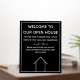 A modern real estate open house welcome foam board in minimalist black and white. Customize this realty agent signage with your custom realtor information and details above the simple line drawing of a home and use this to advertise your open house.