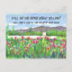 A colorful postcard for your undecided real estate clients decorated with wildflowers growing alongside a white fence with purple mountains in the distance and a warm summer sky above illustrated with watercolor. Customize the message, color, and text on the front. On the back is space for you to write your own special message and include your details with logo and/or photo.